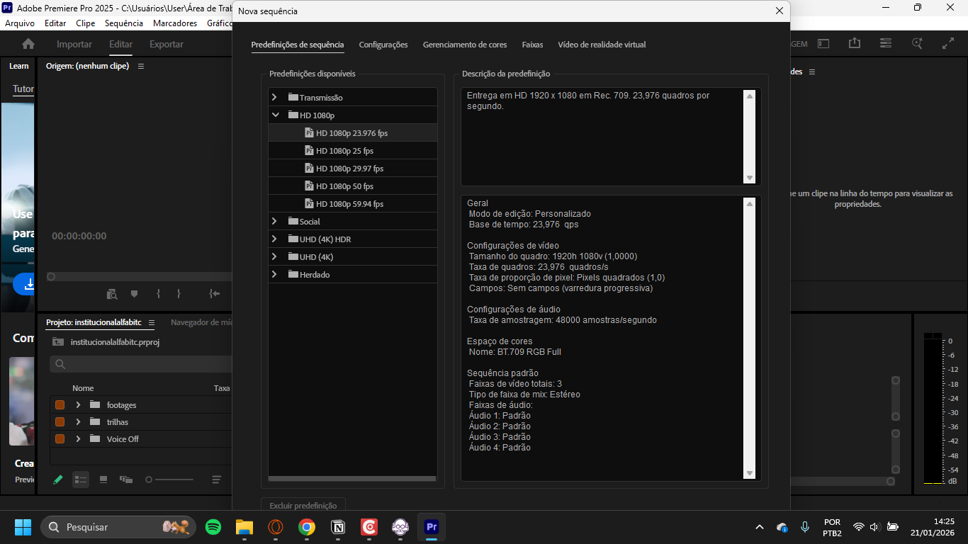 Para resolver essa situação, você pode utilizar a tecla Enter. Após selecionar a resolução, pressionar Enter executará o comando de confirmação equivalente ao botão OK. E para renomear a sequência depois de já criada, você pode clicar sobre ela com o botão direito do mouse e selecionar a opção renomear.