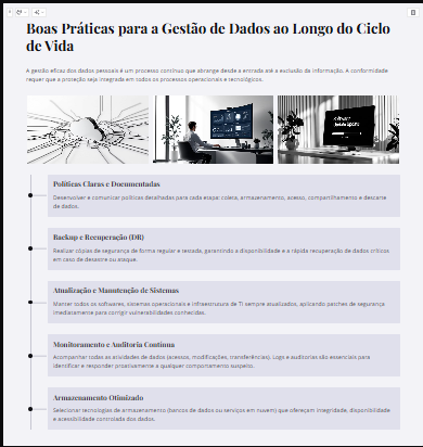 Retenção Adequada: Definir políticas claras sobre o tempo de armazenamento e descarte das informações.