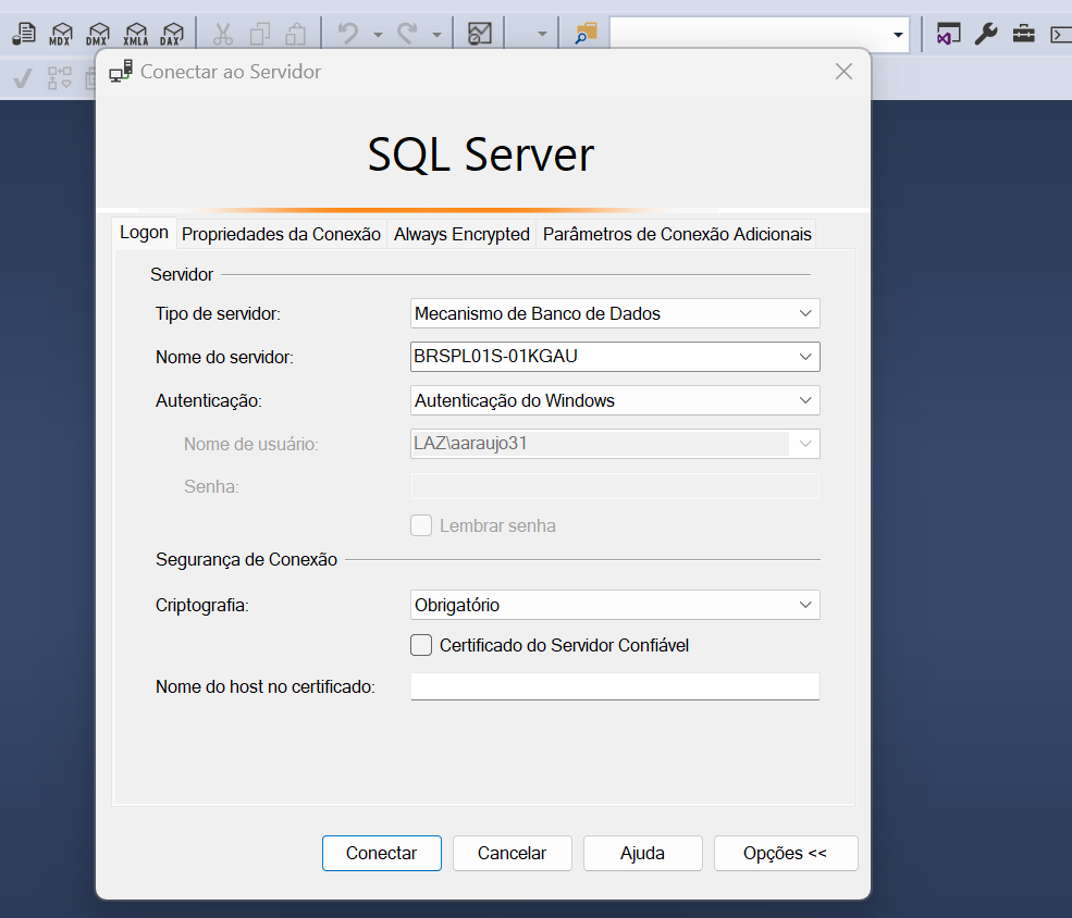Nessa mesma tela em que você se encontra, em Logon, aparece a opção Segurança de Conexão.