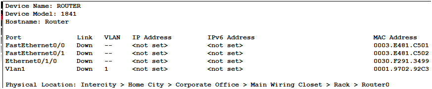Esse procedimento foi repetido para as interfaces FastEthernet0/1 e Ethernet0/1/0, tais que os IPs de suas portas foram definidos, respectivamente, como 193.168.2.1 e 193.168.3.1--- System Configuration Dialog --- Would you like to enter the initial configuration dialog? [yes/no]: no Press RETURN to get started! Router>enable Router#configure Configuring from terminal, memory, or network [terminal]? terminal Enter configuration commands, one per line. End with CNTL/Z. Router(config)#interface FastEthernet0/0 Router(config-if)#no shutdown Router(config-if)# %LINK-5-CHANGED: Interface FastEthernet0/0, changed state to up %LINEPROTO-5-UPDOWN: Line protocol on Interface FastEthernet0/0, changed state to up Router(config-if)#ip address 193.168.1.1 255.255.255.0 Router(config-if)#exit