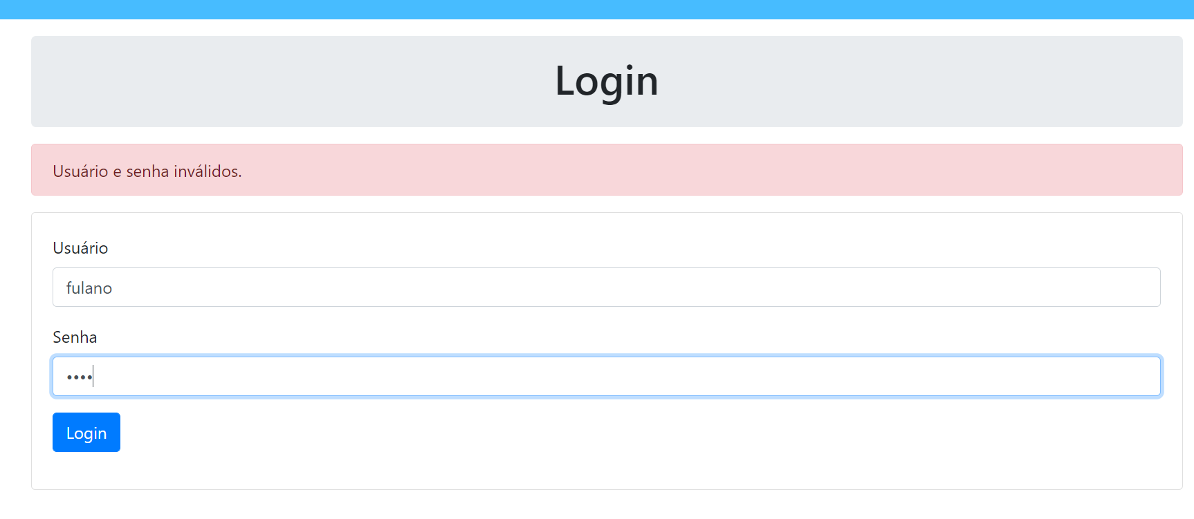 usuario e senha invalidos ao tentar fazer login! Usuario: fulano | Senha: Pass