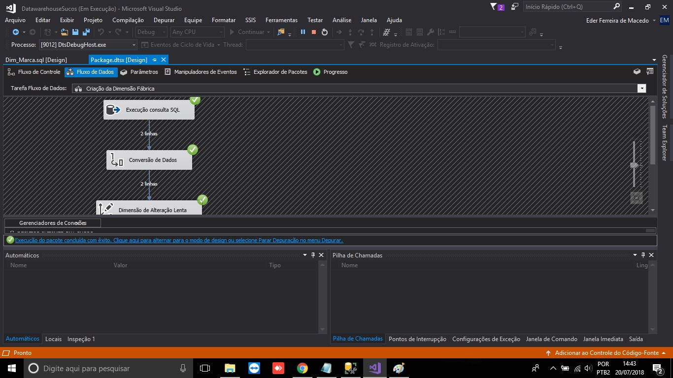 Boa tarde, tudo bom? Segundo a errata que foi postada na aula 7 do curso de Business Inteligence: ETL parte 1, eu segui o passo a passo que foi dito na errata e fui até a aba Mãos na Massa e segui o procedimento correto, entretanto, o erro que foi dito que haveria não houve. Gostaria de saber se eu fiz algo errado, ou não. Porque na conclusão final, quando se clica em Iniciar para mandar os arquivos para o DW não dá erro, nem depois quando no terceiro vídeo, o professor diz para clicar em Parar e Iniciar de novo. Tenho prints de como ficou o meu trabalho. Gostaria de saber se poderia mandar para o professor dar uma olhada e se está certo ou não. Grato desde já.