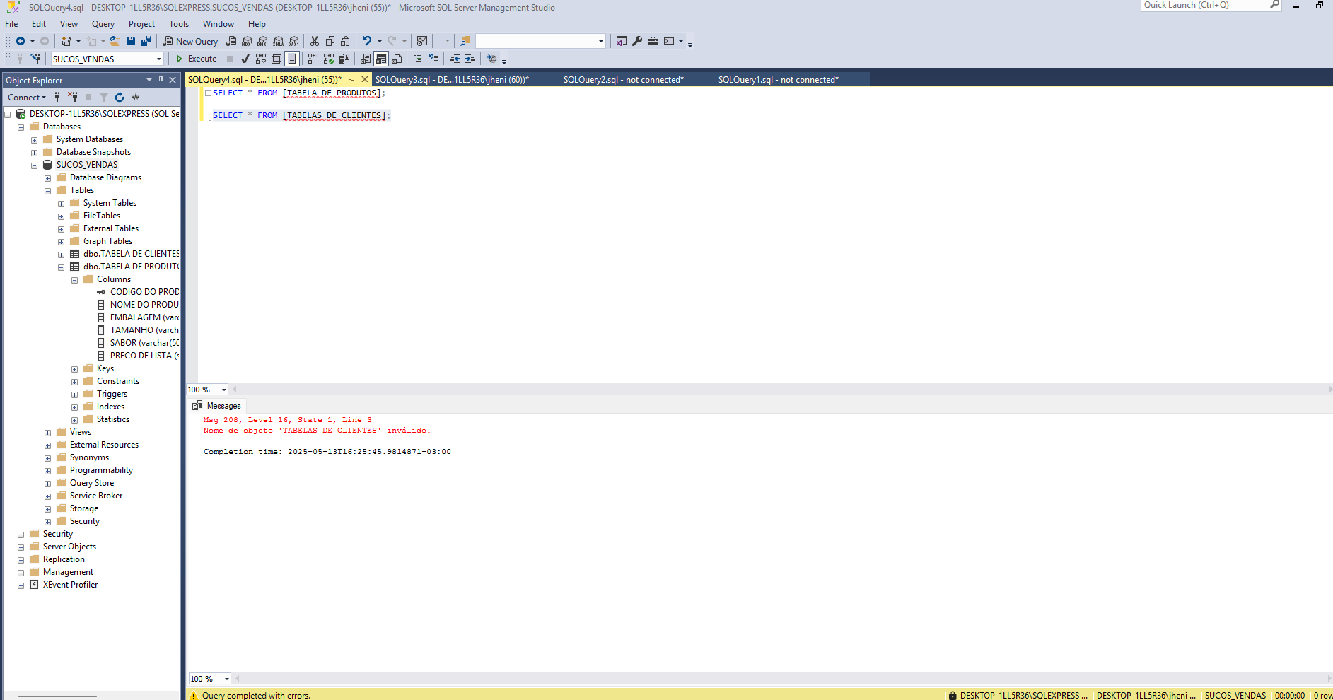 Então, recomendo que altere esse código, colocando de acordo com a escrita da sua tabela e tente rodar o código novamente.