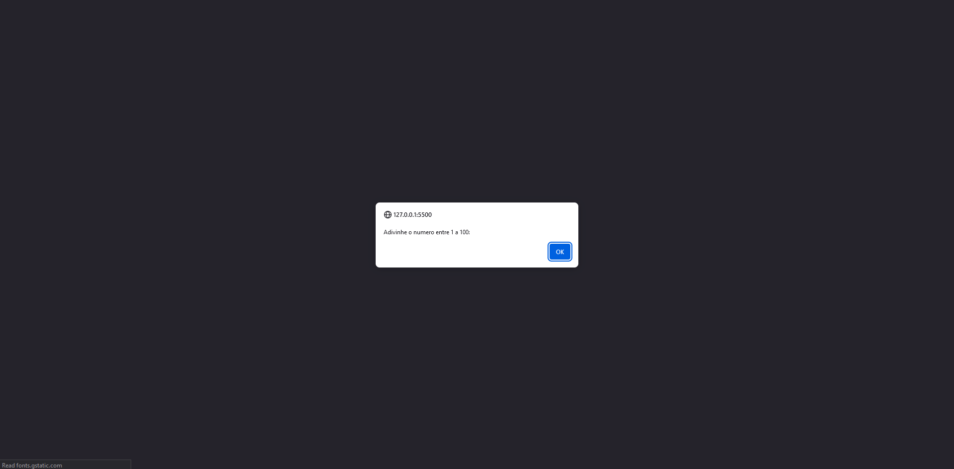 Quando tento abrir o index do jogo no meu navegador aparece para eu clicar em ok no bem vindo ao jogo, mas quando eu clico em ok a pagina fica para sempre em branco tentando carregar a pagina, como se eu estivesse sem internet, eu ja tentei no chrome, no edge e no firefox e nos 3 fica carregando para sempre após clicar em ok! (https://cdn1.gnarususercontent.com.br/1/5775637/2dfd8171-b7b8-49ff-b8fa-9e5a25d105b4.png) (https://cdn1.gnarususercontent.com.br/1/5775637/31f751bf-df06-45ae-99dc-8cb34ad6ef17.png) e fica para sempre carregando durante as primeiras aulas o jogo abria normalmente mas depois da aula de concatenação não consigo abrir o jogo
