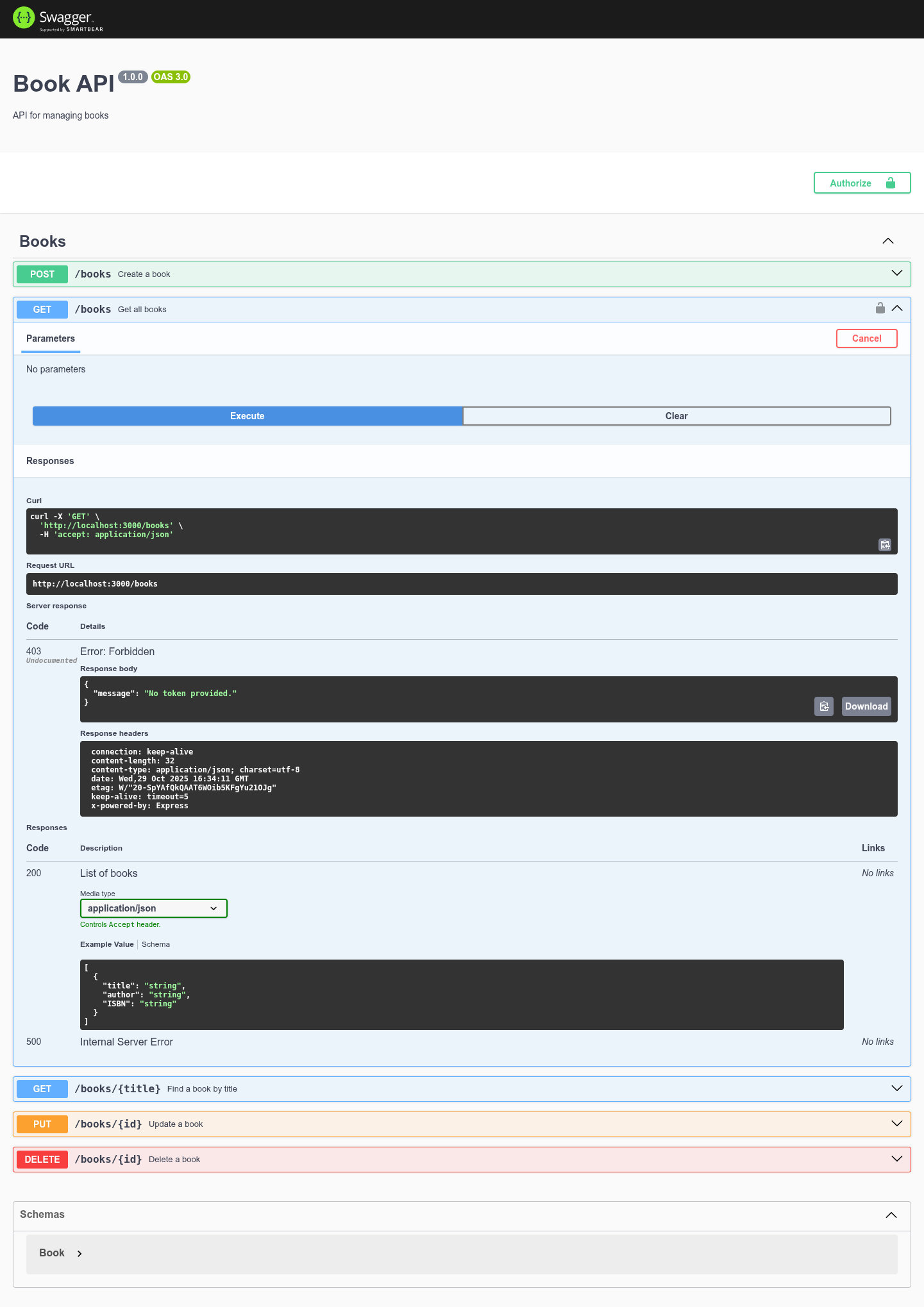 Não consigo recuperar a lista de livros cadastrados pela API, pois supostamente o token de autenticação não foi enviado. A inserção funcionou sem problemas. !captura de tela da api docs](https://cdn1.gnarususercontent.com.br/1/6550199/3bca4ee7-3f50-45a3-a679-4a5b1ecceb2a.png)